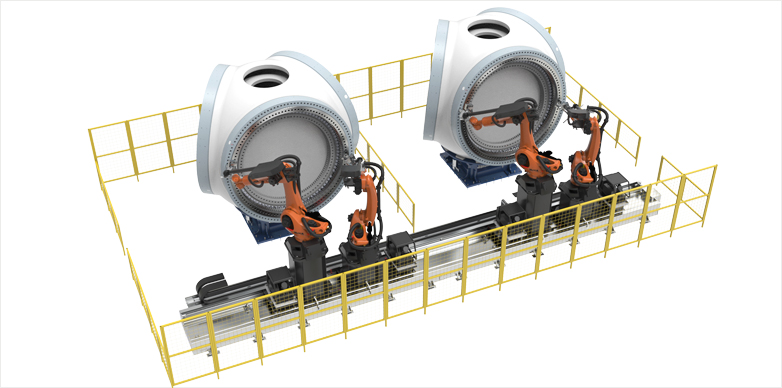 在新能源領(lǐng)域——風(fēng)電行業(yè),必一运动 B-sports智造國內(nèi)首創(chuàng)的機(jī)器人智能螺栓緊固系統(tǒng),擁有多項專利技術(shù),風(fēng)電行業(yè)螺栓緊固系統(tǒng)處于市場領(lǐng)先地位;風(fēng)電主機(jī)裝配用的重載AGV智能化脈動生產(chǎn)線,多車聯(lián)動技術(shù)獨(dú)樹一幟;風(fēng)電葉片大型曲面智能柔性磨拋技術(shù)、機(jī)架超厚板自動化焊接機(jī)器人系...